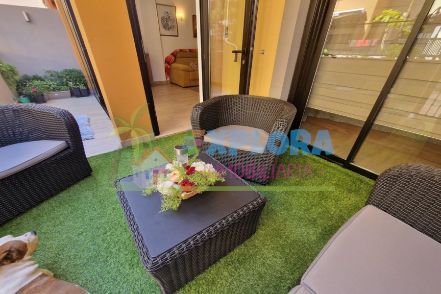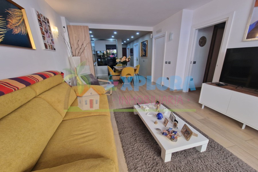 Appartamento spazioso e ben distribuito in zona tranquilla di Adeje. La proprietà dispone di due camere da letto, due bagni, ampio salone con cucina a vista, il tutto illuminato da una grande parete in vetro che dona luce naturale durante tutto il giorno. Arredamento di qualità.