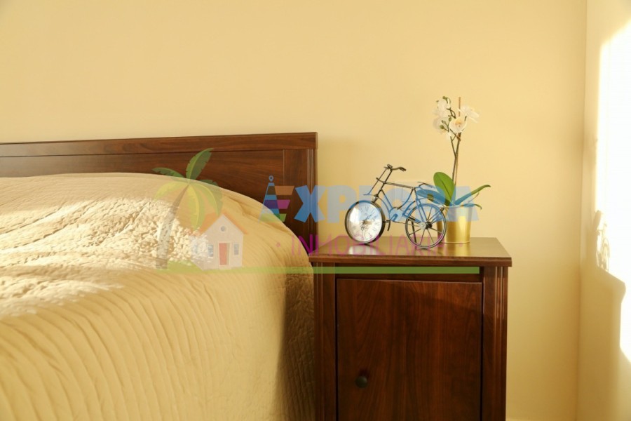 L'appartamento é composto da: al piano terra - una cucina combinata con un soggiorno, attrezzata con elettrodomestici: piano cottura, forno, bollitore, forno a microonde, lavastoviglie, frigorifero, comprensiva di tutti gli utensili. Il soggiorno ha un divano letto, TV, tavolo. Terrazza con tavolo da pranzo, zona soggiorno e lettini prendisole, dalla terrazza c'è un'uscita sul complesso e sulla piscina. C'è un bagno per gli ospiti sul pavimento. Secondo piano - camera padronale con letto matrimoniale e bagno privato con doccia, seconda camera con letto matrimoniale, secondo bagno con vasca. Entrambe le camere hanno un balcone. Terzo piano - una piccola camera da letto con divano letto e uscita sulla terrazza, che offre una splendida vista panoramica sull'oceano e sulla città. Piano interrato con garage privato per 1 auto.